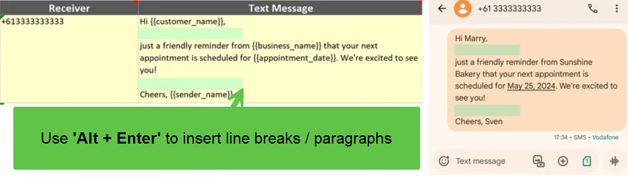To add line breaks or paragraphs in your SMS messages, simply use the Alt + Enter shortcut while typing in Excel. This allows you to create a new line within the same cell, making your messages easier to read and more visually appealing.