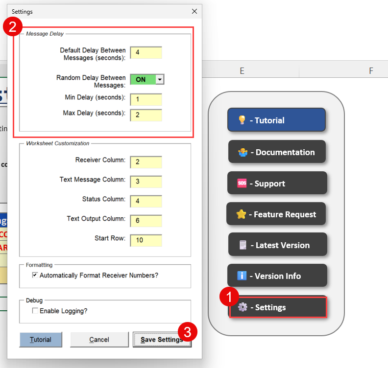 - The SMS Blaster includes a default random delay to make bulk messages less conspicuous. You can increase this delay in the settings if necessary. However, note that longer delays will result in extended runtimes for bulk campaigns and may not guarantee delivery.