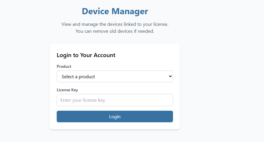 You can view and manage the devices linked to your license from the Device Manager.