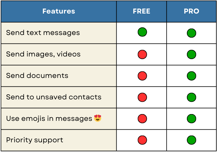 Upgrading to PRO unlocks additional features, making your WhatsApp Blaster experience more powerful and flexible. Here’s a comparison between the Free and PRO versions: