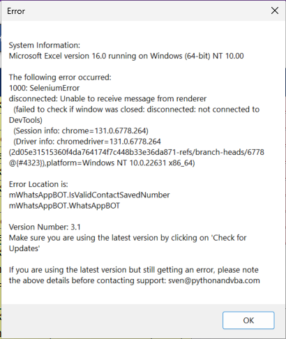 If you encounter the error 1000: SeleniumError – disconnected: Unable to receive message from renderer, it is usually caused by an outdated Chrome test browser or ChromeDriver.